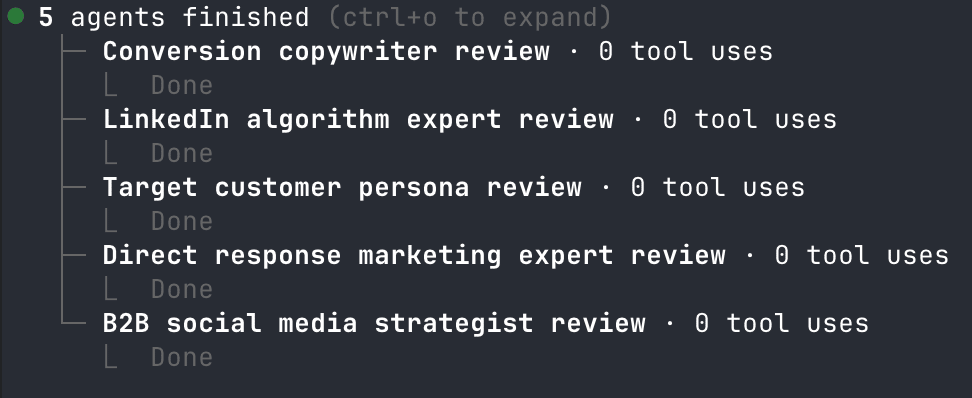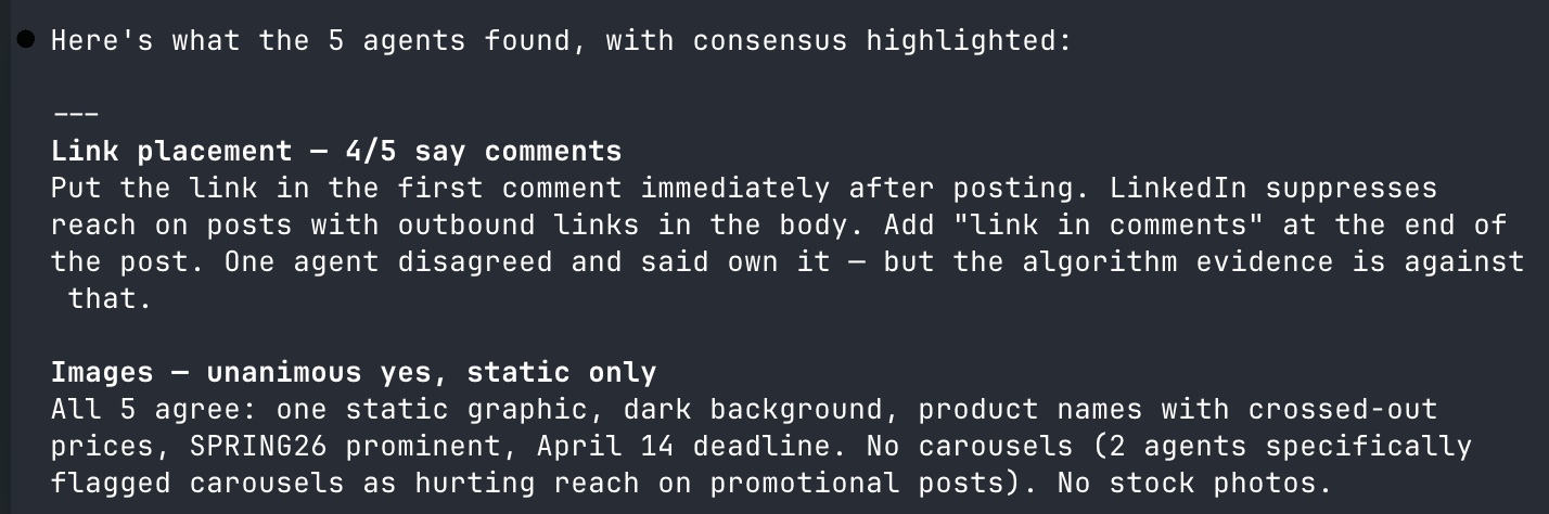 Here you can see how Claude automatically created an agent for a different task and then showed me the consensus: